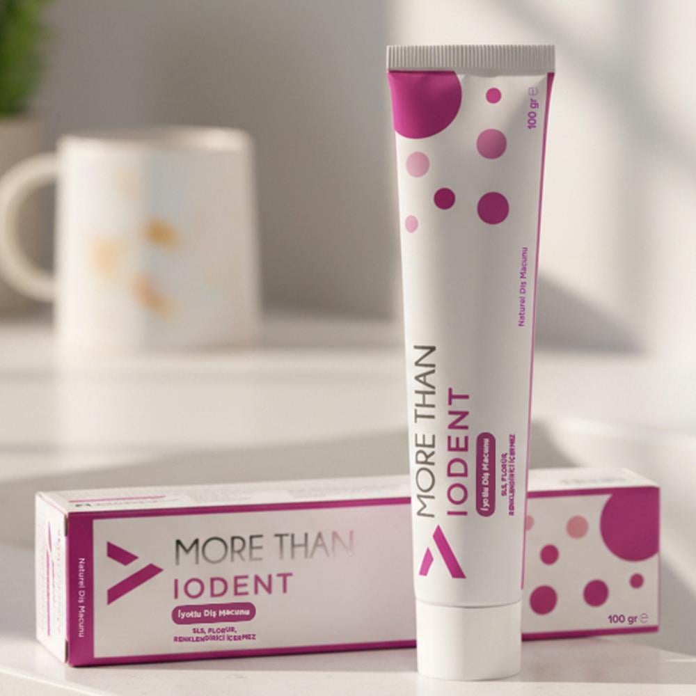 More Than Iodent, iyot içeren %100 doğal ve temiz içerikli florürsüz diş macunudur. SLS, florür, paraben, renklendirici gibi maddeler içermez.