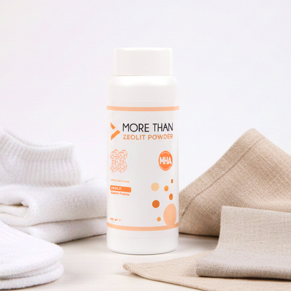 More Than Zeolit Pudra, alkol, parfüm, boya içermeyen %100 zeolit içeriği ile amonyak bağlayıcı özelliğe sahip doğal bakım pudrasıdır. Yenidoğandan yetişkine kadar yeni nesil pudra özelliği ile güvenilir kullanım sağlar. Cildi destekler.