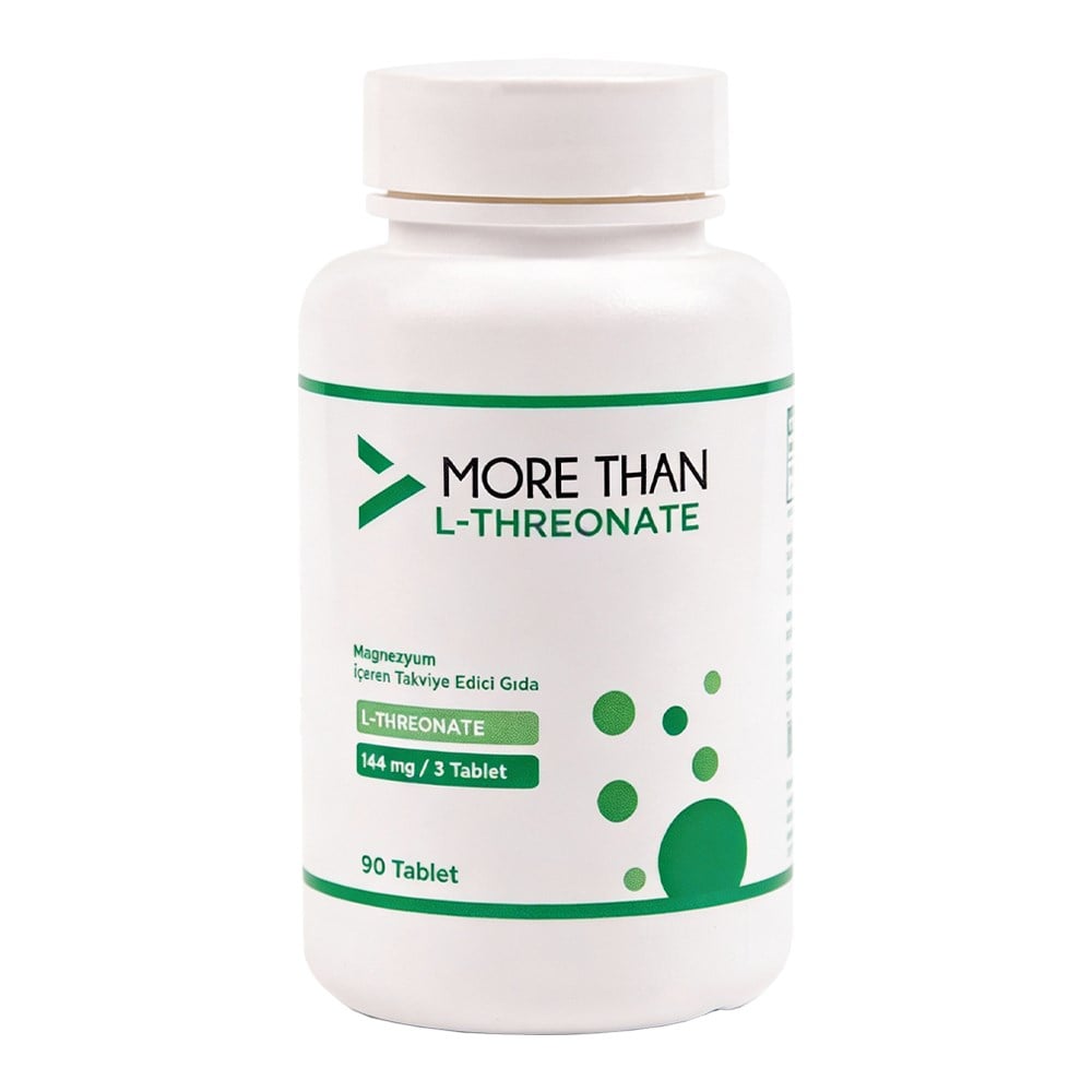 More Than Magnezyum L-Threonate, magnezyumun organik formu olan Magnezyum L-threonat içerir. 3 tablette 144 mg Magnezyum içeriğiyle günlük ihtiyacınızı karşılamaya yardımcı olur.