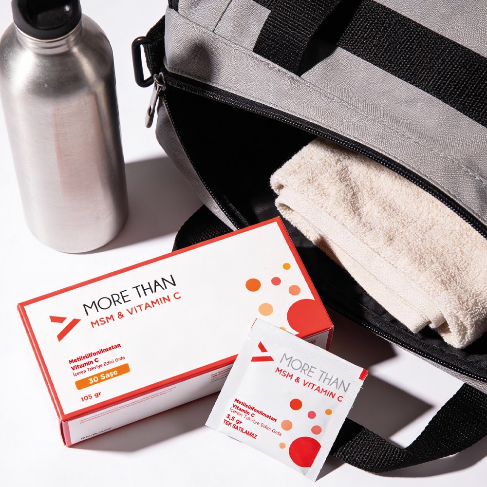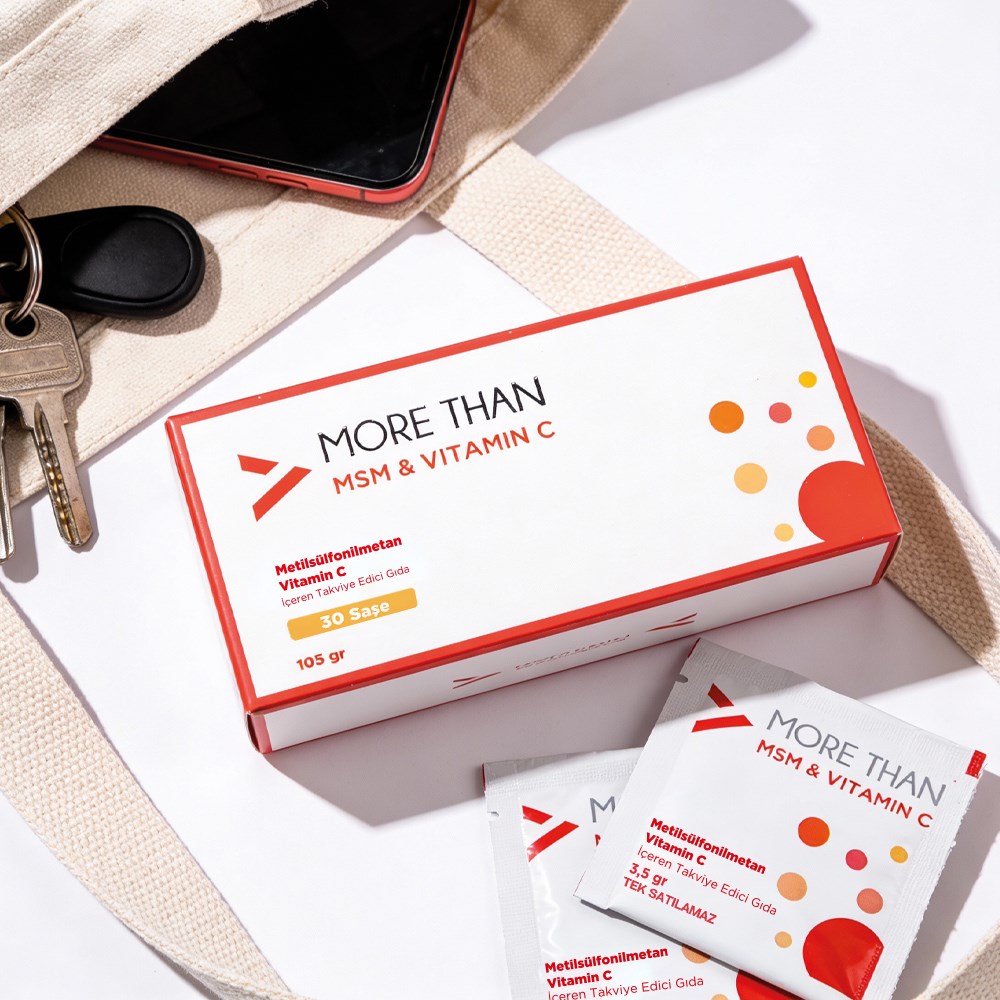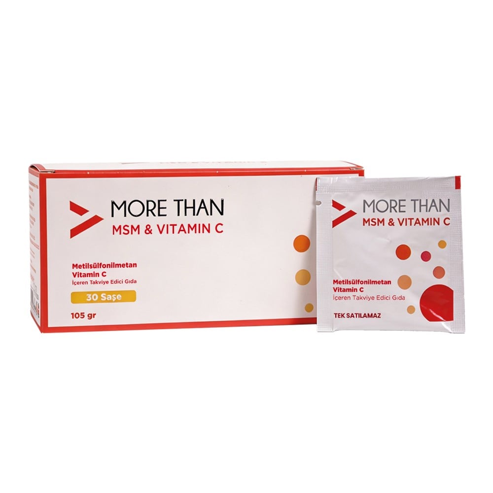 More Than MSM&Vitamin C, tek saşede 3 gr MSM ve 500 mg C vitamini içerir. %100 doğal, temiz, koruyucu ve katkı maddesi içermeyen içeriği ile günlük kullanımınızda etkili içerik sunar.